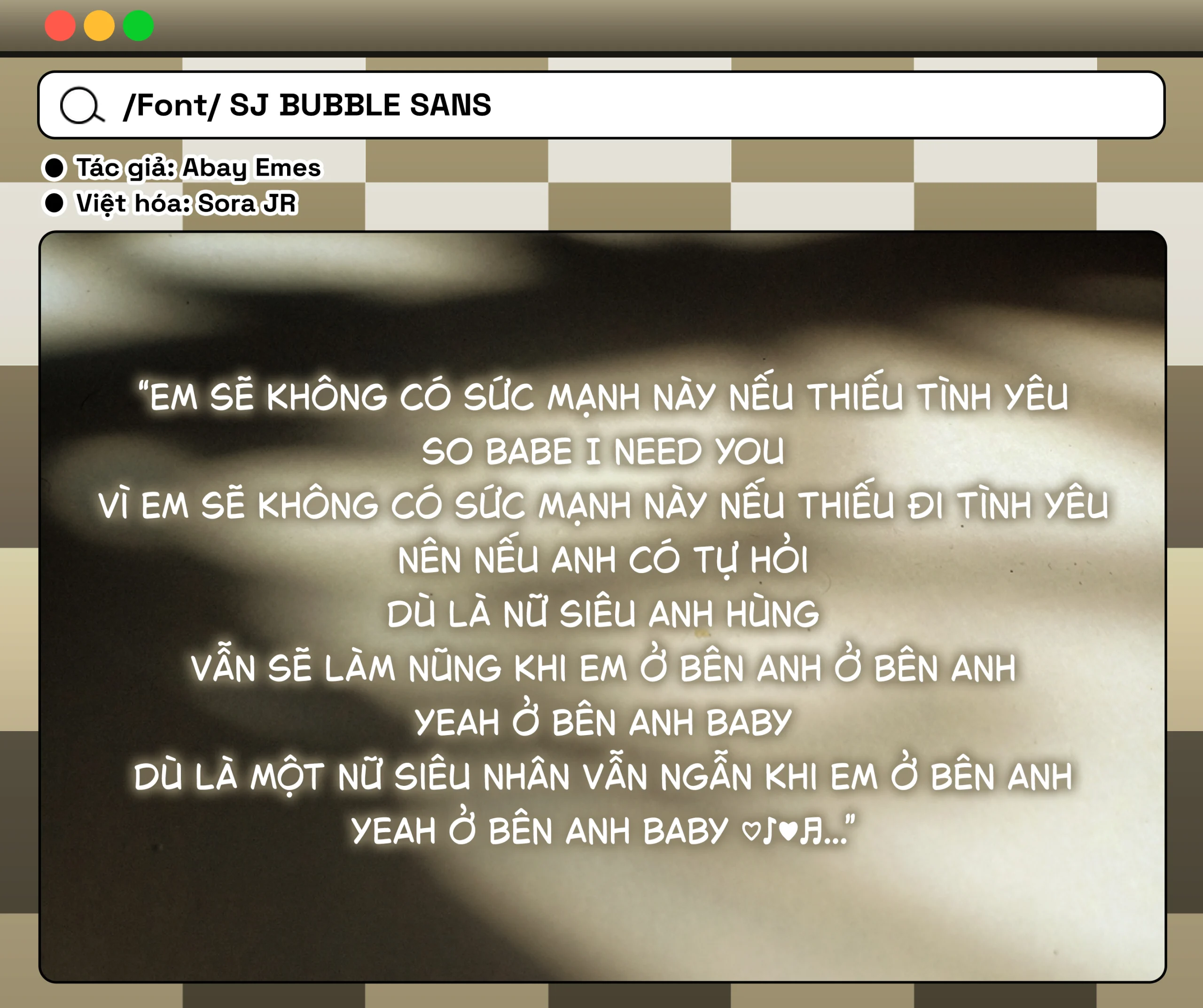 SJ Bubble Sans • Font Việt hóaFonts, Free, Light / Leave a Comment Chọn nhanh một văn bản mẫu abcdefghijklmnopqrstuvwxyz ABCDEFGHIJKLMNOPQRSTUVWXYZ 0123456789 trường ở quê sạch và đẹp lắm do bố xây kĩ TRƯỜNG Ở QUÊ SẠCH VÀ ĐẸP LẮM DO BỐ XÂY KĨ Dân ta phải biết sử ta, cho tường gốc tích nước nhà Việt Nam DÂN TA PHẢI BIẾT SỬ TA, CHO TƯỜNG GỐC TÍCH NƯỚC NHÀ VIỆT NAM the quick brown fox jumps over the lazy dog THE QUICK BROWN FOX JUMPS OVER THE LAZY DOG Bấm vào đây để gõ thử nàooo~ Kích cỡ Khoảng cách dòng Khoảng cách giữa các ký tự Xem bảng ký tự đầy đủ Truy cập Truy cập